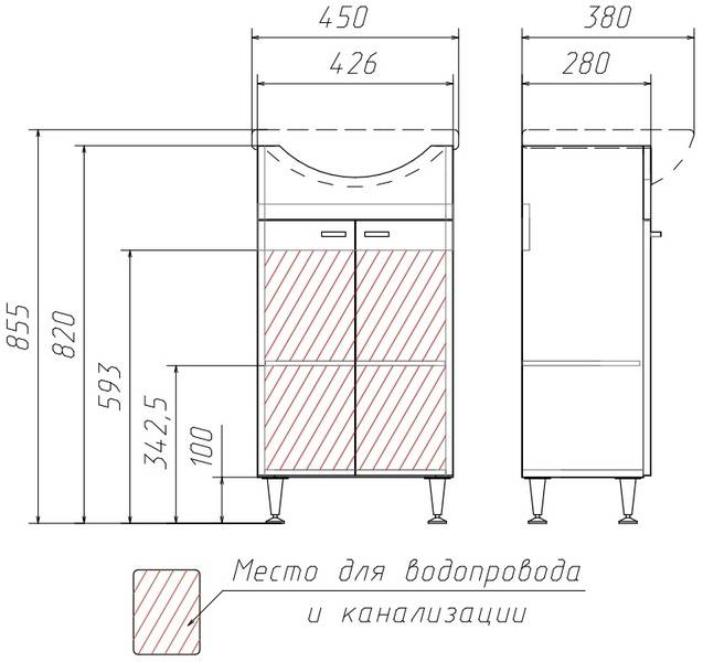 Тумба под умывальник Домино Азов 45 люкс имеет небольшие габариты, но это только с первого взгляда. Под малогабаритностью скрывается хорошая вместительность. Тумба Азов 45 люкс проста в установке и использовании, но с другой стороны очень элегантна. Под тумбой можно скрыть, к примеру, канализационные трубы.