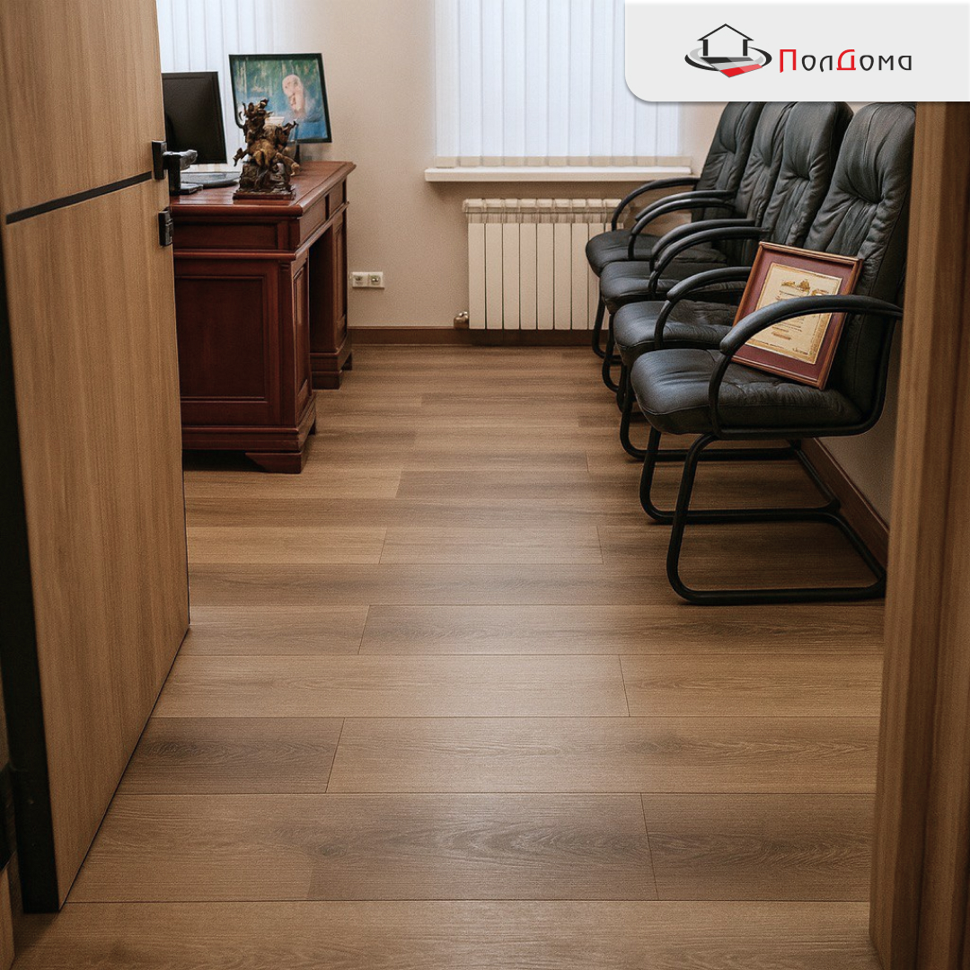 Офис получил современный, практичный и износостойкий пол. Покрытие выдерживает повседневные нагрузки, устойчиво к типовым загрязнениям, легко моется и визуально расширяет пространство благодаря натуральной фактуре. Сроки соблюдены, помещение сразу готово к эксплуатации.