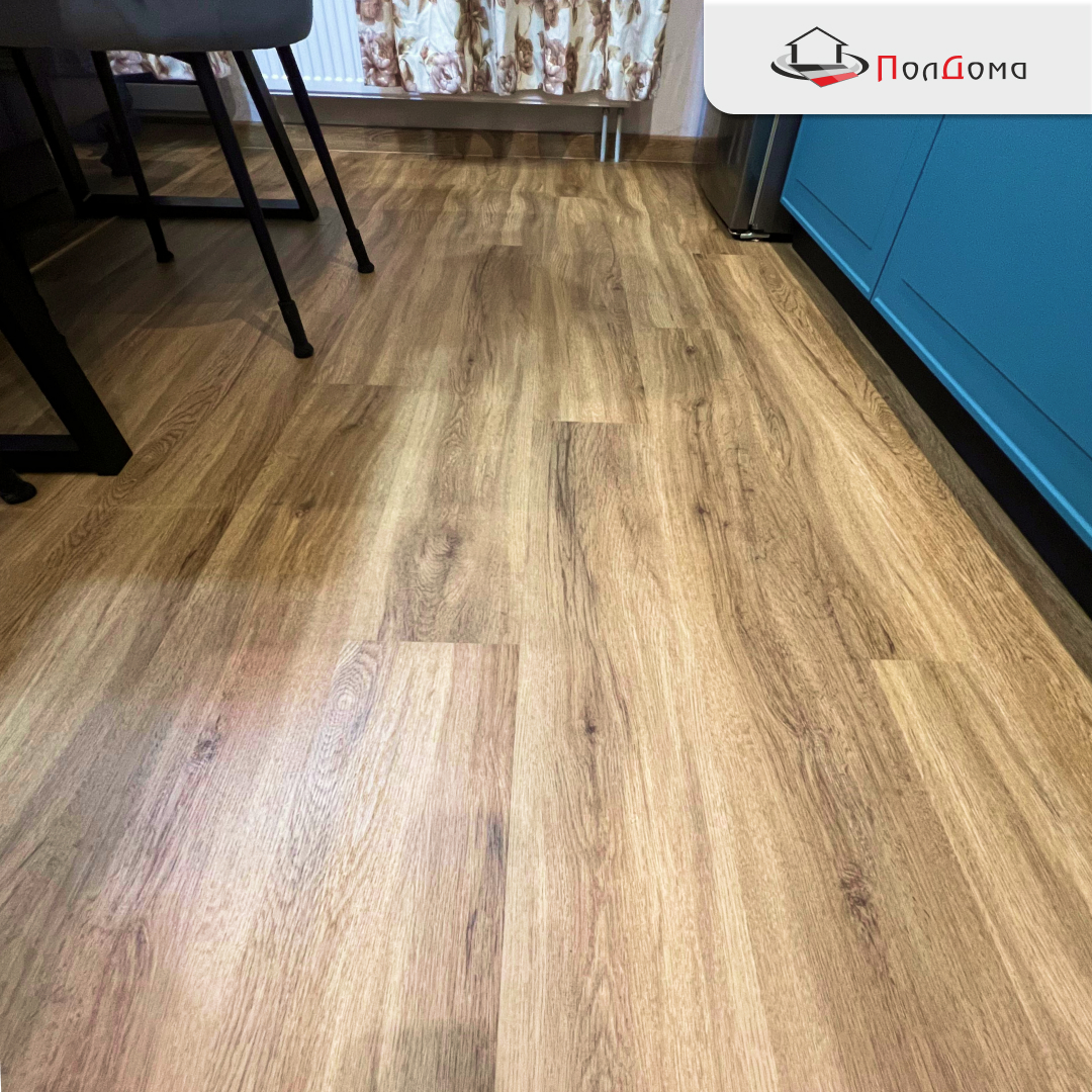 После укладки кухня преобразилась: пол стал визуально теплее, пространство — уютнее, а интерьер приобрёл завершённый вид. Благодаря ровному основанию и профессиональной укладке стыки незаметны, поверхность выглядит как единое целое. Ходить по новому полу приятно и босиком, и в обуви — мягкий винил гасит шаги и добавляет комфорта.